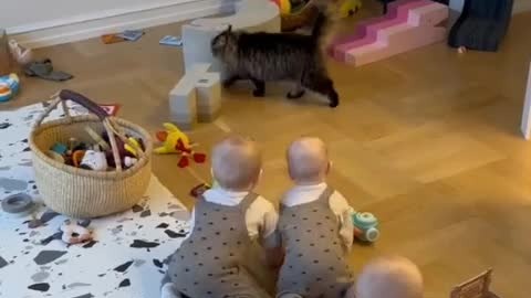Дети и кот😁