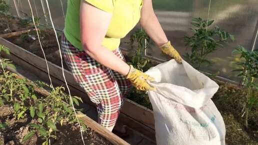 Мульчирую томаты скошенной травой.