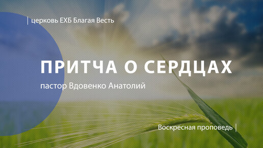 Притча о сердцах | Проповедь | пастор Вдовенко Анатолий | Церковь Благая Весть