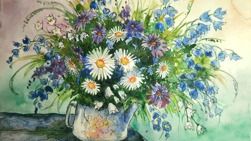 Букет полевых цветов. Акварель