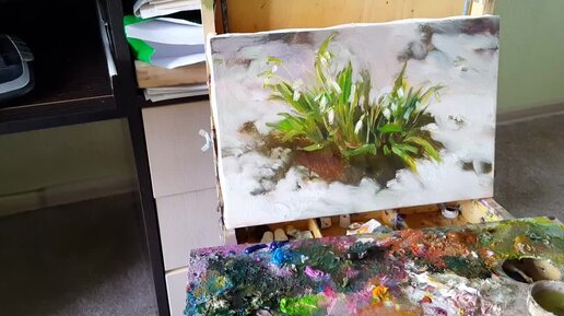 Подснежники. Видеоурок. Как научиться писать маслом этюд.