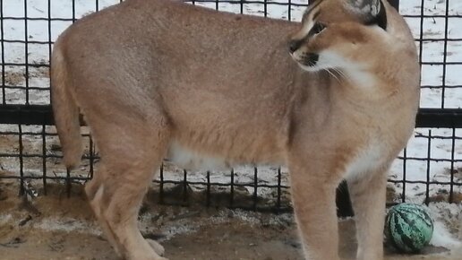 Каракал неправильно использует игрушечный мяч.