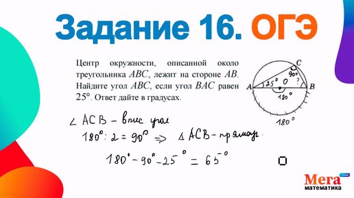 Окружность ОГЭ | Геометрия ОГЭ | Математика ОГЭ | МегаШкола | Вписанный угол | Треугольник