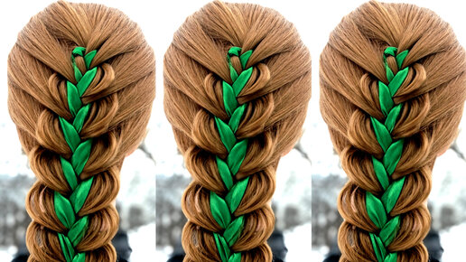 Объёмный колосок с лентой/Быстрая и красивая прическа/Подробный урок