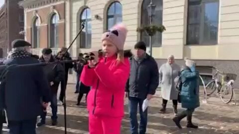 "Руслан и Людмила" на акции против сноса памятника Пушкину в Риге. Фрагмент легендарной поэмы русского классика прочла маленькая девочка.