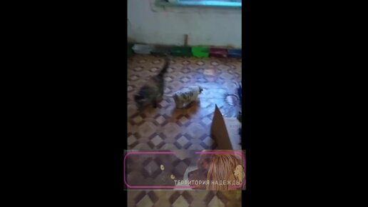 Котики и щеняточки, которых подкинули вчера, три девочки щенятки Вера, Надежда, Любовь.