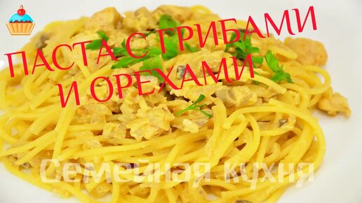 Паста с шампиньонами и орехами.
