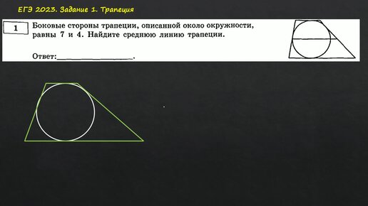 ЕГЭ 2023. Задание 1. Боковые стороны трапеции, описанной около окружности, равны 7 и 4.