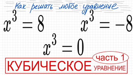 №1 Кубическое уравнение x^3=8 х^3=-8 x^3=0 Как избавиться от третьей степени Как решить уравнение 8к 9кл ОГЭ 10кл 11кл ЕГЭ