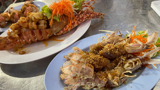 Лобстеры и гигантские креветки на Пхукете: цена на морепродукты на рынке Banzaan. Лобстер креветки барбекю с чесноком (это очень вкусно)