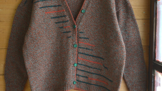 Вязаный кардиган с удобной проймой и полосками на большой размер