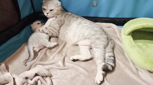 Так мило! Кошка ухаживает за своим 1 месячным Котёнком 😇 Моет и чистит попу