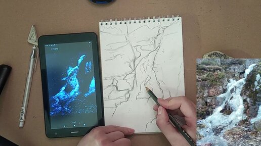 Как рисовать просто? Рисуем водопад акварелью. Часть 1. Карандашный набросок