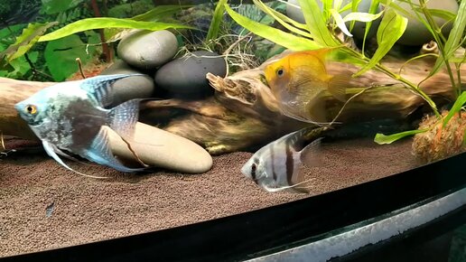 Аквариум на 13.03.2023г. Сформировалась пара у скалярий.