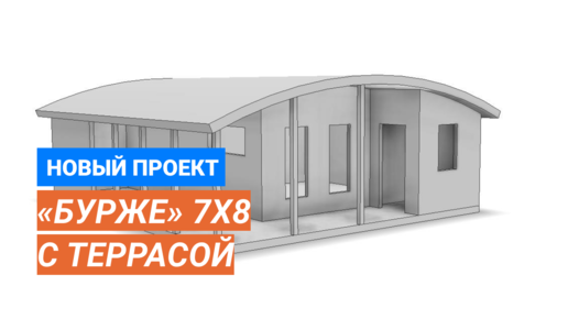Новый проект бани «Бурже» 7х8 с угловой террасой