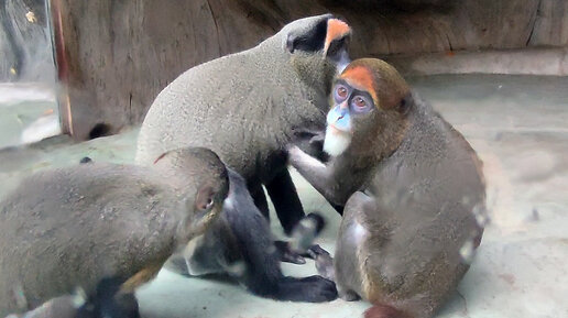 Мартышки Бразза чешут друг друга в весенний дождливый день