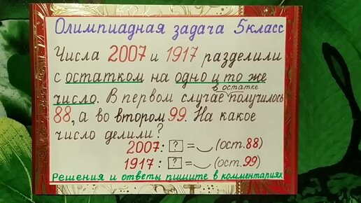 Олимпиадная задача за 5 класс "На какое число делили?"