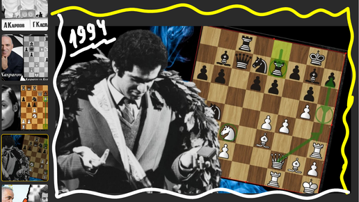 Чемпион мира Гарри Каспаров заблицевал черными Сашу Чернина в 1994 году в Мюнхене, 1994 - покажу мат в доигрывании и ошибки, стрелки, 0-1