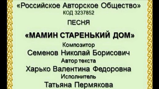 "МАМИН СТАРЕНЬКИЙ ДОМ"