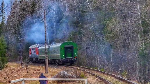 Пригородный поезд как "корабль" цивилизации в глуши Тверских лесов убегает вдаль