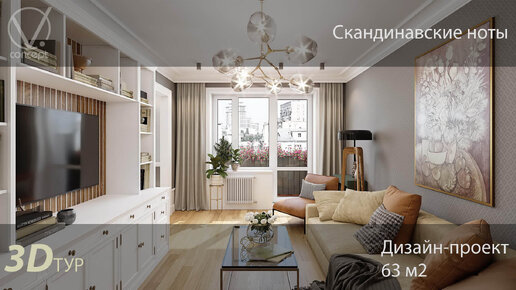 "Скандинавские ноты". Проект 2-х комнатной квартиры 63 м2