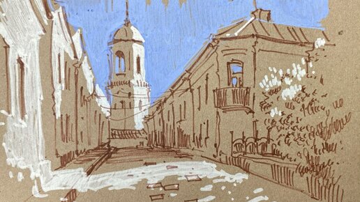 Рисуем атмосферный пейзаж по открытому уроку Марины Бодриной. Ещё больше секретов городских зарисовок тут https://klch.ru/y/80d717b
