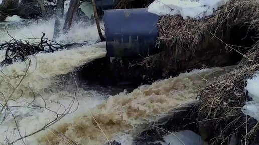 Весенний паводок воды на пруду. Пришла весна идет в поволжье.