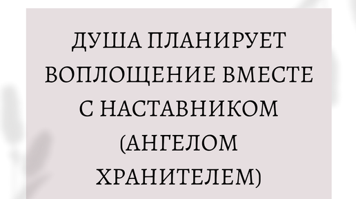 Душа планирует Воплощение вместе с наставником ( Ангелом хранителем)