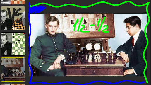 Алехин - Капабланка. Несмотря на то, что результат - ничья, эта партия в 86 ходов матча (речь о 22-й игре 1927 года) одна из самых известных