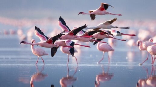 Сотни фламинго прилетели на озеро Караколь