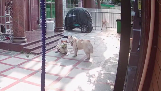 Собака помогла своему сородичу избавиться от воротника, чтобы вместе поиграть