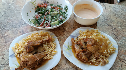 Что приготовить на ужин для всей семьи из УТКИ. Рецепт который вам точно подойдет. Сочная утка, соус к мясу (утка), полезный овощной салат.