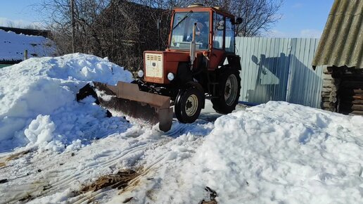 Расчистили снег перед воротами на Т-25