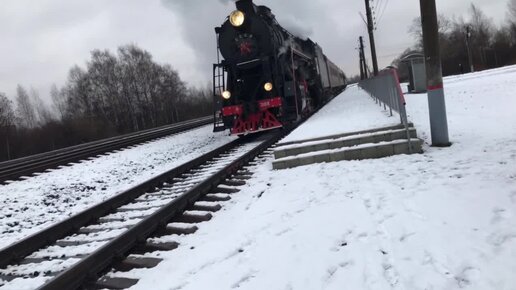 Поезд с паровозом Ярославль-Рыбинск отправляется со ст Молот 13.11.2021г