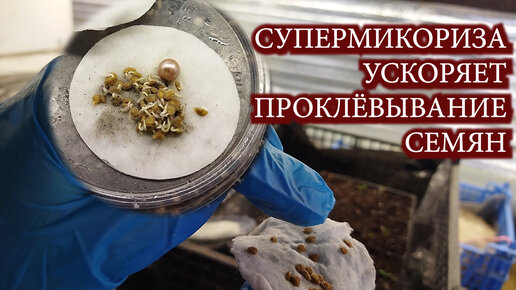 Сравниванию прорастание семян огурцов и томатов с супермикоризой от ООО "Биохайтек" и суспензией хлореллы.