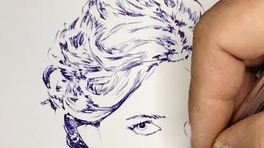 Как быстро сможете узнать знаменитую актрису? Рисую портрет шариковой ручкой.