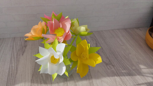 Легко сделать цветок из бумаги. Букет из нежных цветов из бумаги.