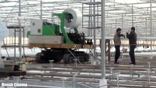 Прокат металлопластикого латка в промышленной теплице на сциальном станке.