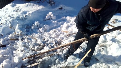 Немного о жизни в деревне... Достаю горбыль из под снега
