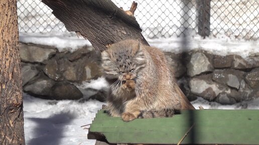 Манул Эмма умывается. 15.03.2023