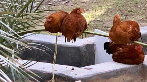 Курицы на пальме в оазисе города Аль-Айн