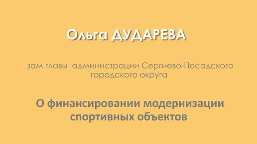 Ольга Дударева - о финансировании модернизации спортивных объектов