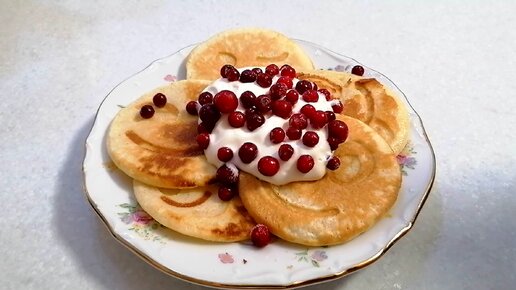 Мягкие вафли на завтра без вафельницы, с брусникой и сметаной особенно вкусные
