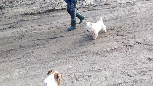 Встретили с амстаффом на прогулке вест хайленд уайт терьера
