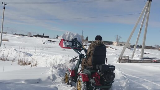 Мини погрузчик самодельный 13л.с. С автомобильным сцеплением, проба снега.