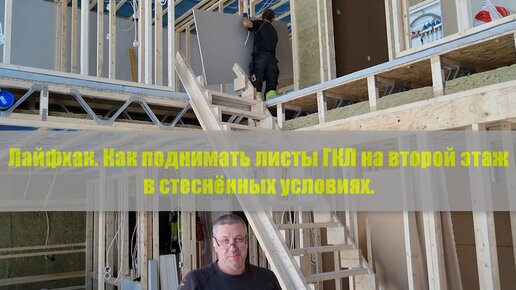 Ещё один способ подъёма ГКЛ на второй этаж в стеснённых условиях. Лайфхак.