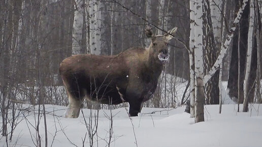 Лосиха по глубокому снегу! Охота глазами видео камеры