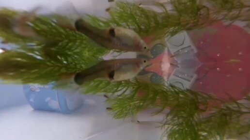 Гуппи рожает живых мальков сразу.