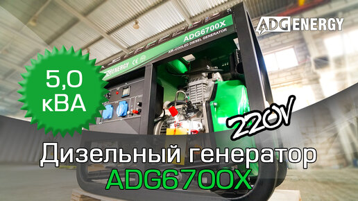 Генератор дизельный ADG6700X (5 кВт/5 кВА), 220В, однофазный, ручной запуск, две розетки, с большим баком, профессиональный.