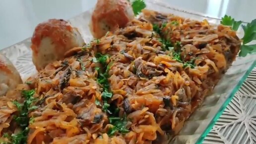 Тушеная капуста с грибами!